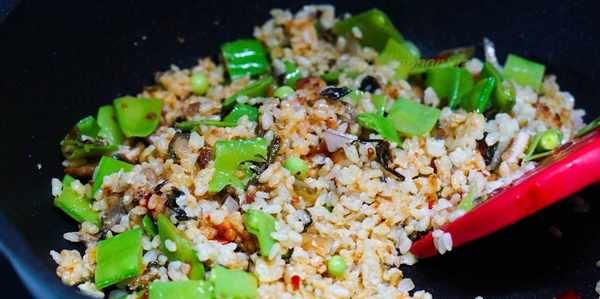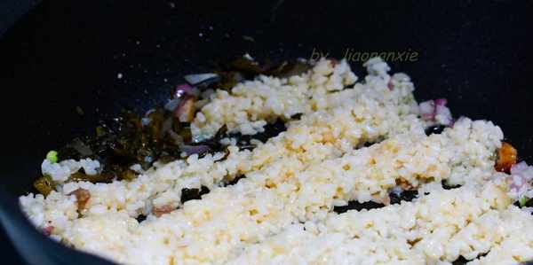 我們習慣用剩飯做炒飯,實際上剛出鍋的熱米飯也一樣可以炒著吃,米飯蒸好後及時打開鍋盛出米飯,散氣後直接炒就好瞭。