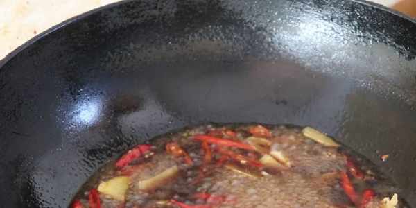 4、這一步,我們要做出之後用到的料汁。向開火的鍋中加入50克生抽,陳醋,冰糖,適量的花椒。然後我們開小火,將加入鍋中的冰糖熬至溶化。在冰糖熔化以後,我們關火,將料汁倒出裝碗,晾涼備用。