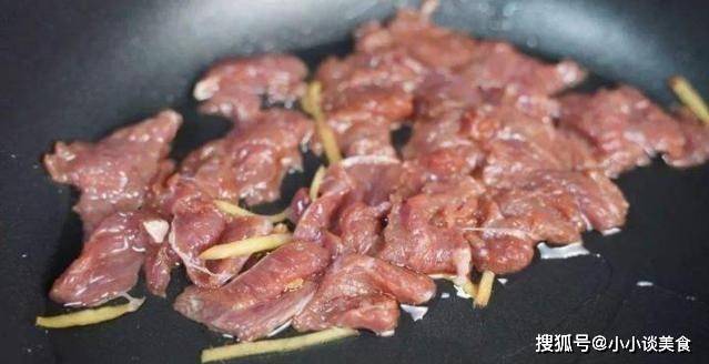 小貼士:用蛋清代替料酒醃制牛肉,可以使牛肉更入味、更嫩。將食用油倒在上面,以防止它粘在鍋上。