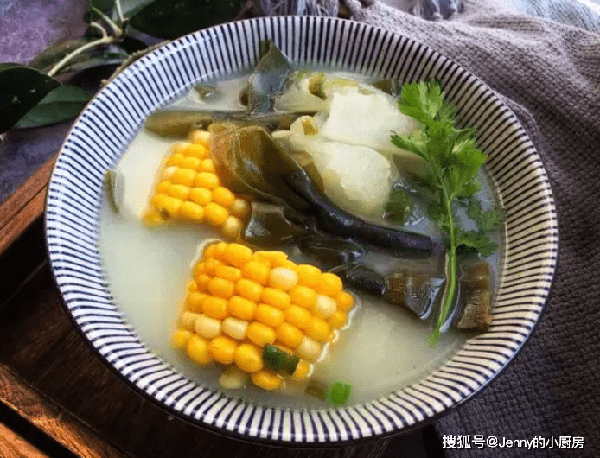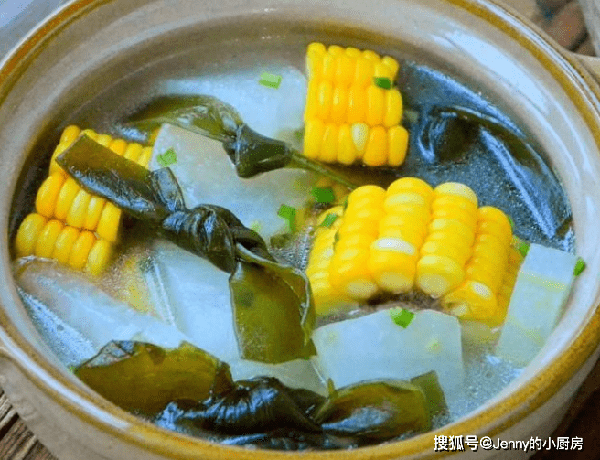 冬瓜去掉外皮和內瓤,處理好後切成薄片。海帶提前浸泡,泡發後洗凈,切成小塊,或者用幹海帶結泡發。玉米洗凈切成小段。