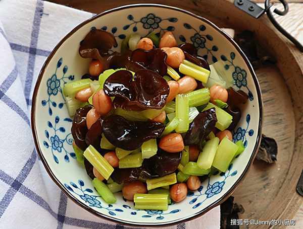 木耳提前浸泡,泡發後去掉根部,清洗幹凈,再撕成小朵。花生提前浸泡兩個小時。