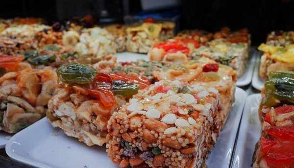 切糕這一特色小吃流行於新疆地區,在當地人的口中,這一小吃還有一個好聽的名字叫做瑪仁糖。