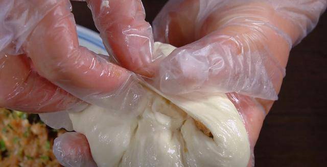 9.放入適量的餡料,把它包起來。包嚴實一點。