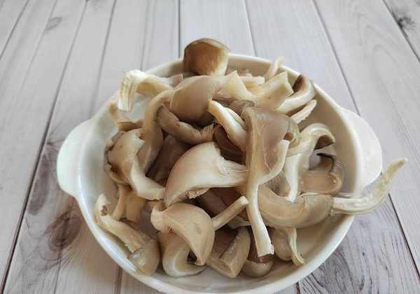 第三步:平菇去蒂,清洗幹凈,撕成小塊,把裡面的水分稍微擠幹一點。