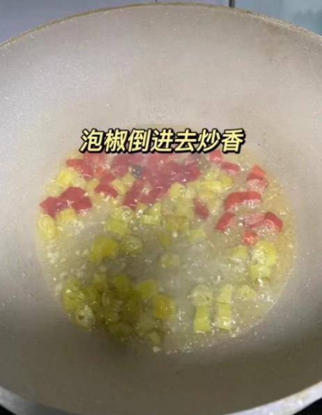 步驟5:鍋底提前燒熱,加上少許色拉油,讓油溫慢慢燒熱,倒入一些蒜片,薑末,幹辣椒和泡椒,大火快速炒香。