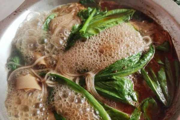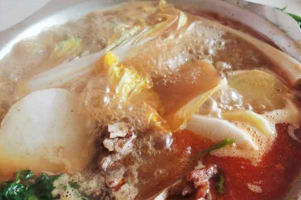 鍋裡漂著一層秘制紅油,不辣,還沒開鍋,就能聞到一陣香氣,讓人垂涎欲滴。開鍋後,趕緊夾一塊嘗嘗,肉質鮮嫩,入口即化,香而不膩。