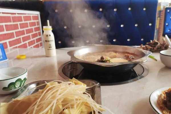 這裡的羊蠍子和羊排也可以拼成一鍋,於是便點瞭一個拼鍋,等不多久,火鍋就端上瞭餐桌,小火一開,鍋裡咕咚咕咚冒著熱氣。