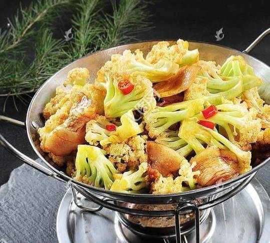 食材:花菜、五花肉、胡蘿卜、青椒、豆瓣醬、鹽、生抽、耗油、味精