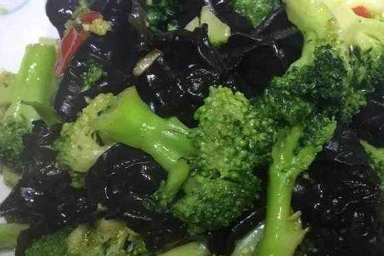 3,西蘭花和黑木耳撈出控水,用廚房用紙或是幹凈的毛巾吸幹表面的水分
