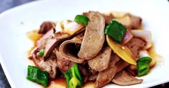 1.豬肝洗凈後,片成2——3mm厚的片,在水中反復沖洗;然後清水浸泡30分鐘,換水繼續洗至無血水;用笊籬撈出,控幹水分;準備配料:青椒、蒜苗、蔥、薑;