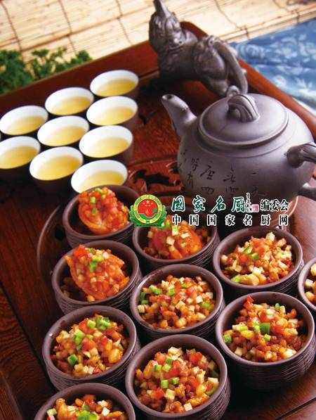 做法:1:鮮鮑飛水2:炒香絞肉出油加特制醬料炒轉加入鮮鮑及蔬菜汁小火慢燒入味加入香油起鍋海椒粒放鮮鮑上面即成3:用礦泉水泡好苦蕎茶一起裝盤成菜。