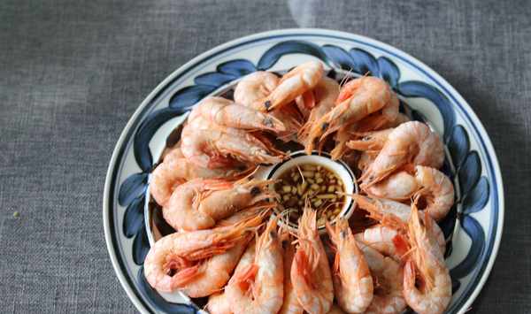 女兒和我一樣,海鮮裡除瞭喜歡吃魚就是蝦,各種甜蝦和海蝦,都愛吃。大蝦的吃飯,最喜歡原汁原味白灼做法,鮮美極瞭,保持瞭食物的本身的鮮味,今天做的蝦是上次從海邊帶回來的蠣蝦,買瞭十多斤,分袋冷凍在冰箱,吃的時候隨吃隨取。蠣蝦也叫立蝦、鷹爪蝦,中等個頭,顏色紅白,殼厚略粗糙很容易剝離,是海邊人最喜歡的海蝦。除瞭味道鮮美,蠣蝦大部分來自海捕,出水即死,所以小攤位上很難見到活的蠣蝦。盡管賣相差點,個頭差點,但味道絕對沒得說,不是養殖蝦能比的。冰箱取出來的蠣蝦,直接放入鍋裡,加入適量水,大火煮沸後再煮2分鐘,撈出裝盤即可,生薑切末,放入2勺香醋,調成料汁,吃的時候直接蘸取即可。