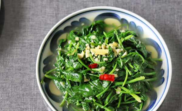 菠菜也是北方冬季的主要蔬菜,耐寒抗凍易生存,是冬季的主要蔬菜,菠菜的營養價值很高,含有很豐富的維生素C,胡蘿卜素,菠菜味道鮮美,可以炒食,涼拌,煮粥都是極好的。蒜蓉菠菜是我最喜歡的一道素食,,簡單易做又快手,吃起來清爽開胃,用來當開胃小菜最適合瞭,每次做一盤都光盤。菠菜摘去黃葉,清洗幹凈。大蒜切成蒜蓉。鍋裡燒開水,下入菠菜焯水30秒,撈出瀝幹水分。炒鍋放入植物油燒熱,放入蒜蓉和辣椒,炒出香味,放入菠菜翻炒1分鐘,加入食鹽調味拌勻,即可出鍋。