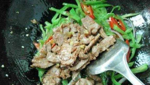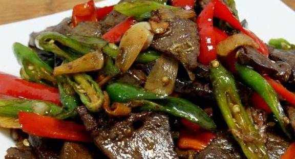 鍋裡加油,放入薑蒜炒香,然後再把醃制好的豬肝放進鍋裡炒變色,然後從鍋裡撈出來,不能炒太久,炒太久的話豬肝容易炒老,主管撈出來後,然後把切好的辣椒放進鍋裡炒斷生,然後再放入炒好的豬肝。