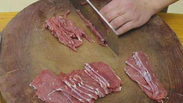 1、牛肉用的是口感絕佳的牛裡脊,非常的細嫩軟滑,都切成筷子粗細的長條,鮮牛肉不要洗,也不要沾水,充分保留它原本的鮮香味。