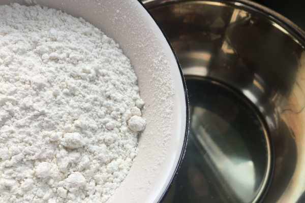第二步:40克玉米油倒入奶鍋中小火加熱,當底部出現紋路時即可關火,將低筋面粉倒入奶鍋中,快速攪拌成面糊。