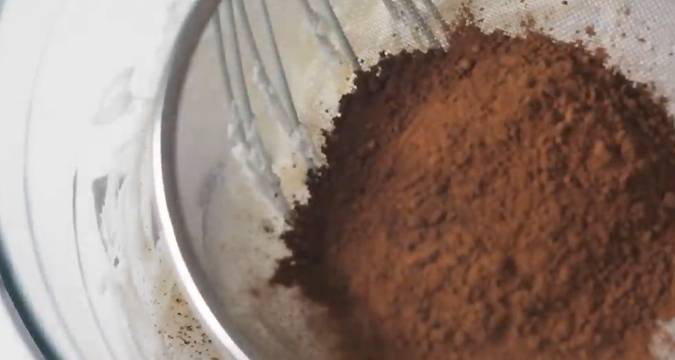6.在室溫下融化無鹽黃油,攪拌至順滑,加入過篩的可可粉,混合均勻。