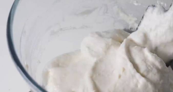 1.把蛋白放入碗中,用電動打蛋器進行攪打,分成2-3次加入砂糖,將蛋白打至提起打蛋器出現堅硬小彎鉤兒的狀態,再放入香草精攪拌均勻即可。