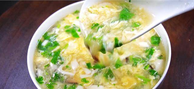 3、再次起鍋水開之後,添加鹽、胡椒粉,再放入香菇絲,大火燒開煮2分鐘,之後倒入淀粉水,邊倒邊攪拌。等到湯汁濃稠後,倒入豆腐絲,蝦仁,大火煮開,淋入雞蛋液,雞蛋花形成之後,盛入碗中,撒入蔥花,香菜,香油,三鮮豆腐羹就做好瞭。