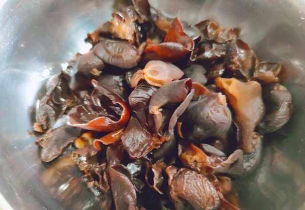 1、木耳提前用水泡1小時,泡發後洗幹凈,瀝幹水分。燒一鍋開水,放入一勺鹽,倒入木耳煮2分鐘,撈出過涼水,瀝幹水分備用。