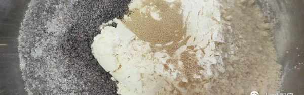 2.中筋面粉400克,加入打好的黑米粉,5克酵母,一點砂糖,先用手或者筷子混合一下。(高血糖的不要放糖瞭)