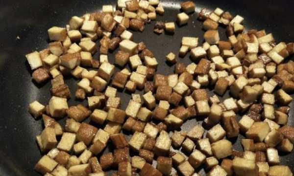 4、豆幹要買薄薄的很香很入味的那種五香豆幹,切成豆幹丁,鍋裡放麻油和藤椒油稍微熱一熱,豆幹丁放進油裡翻炒幾下就出鍋,不要炒太久,豆幹脫水瞭不好吃。