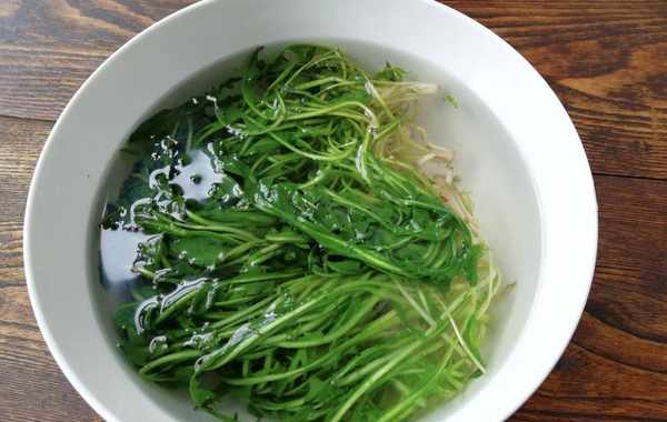 2、把蒲公英放進沸水裡焯水,丟進去煮2分鐘就撈起來,時間長瞭營養物質損失多,立刻用純凈水沖洗一下。