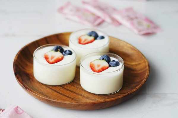 3、做好的酸奶可以直接吃,冷藏後口感更佳,還可以搭配蜂蜜、水果、麥片等,一人一杯,非常方便。