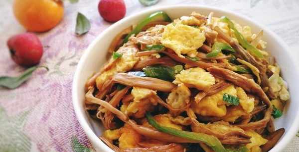 熱鍋冷油,放入黃花菜,翻炒至變色。