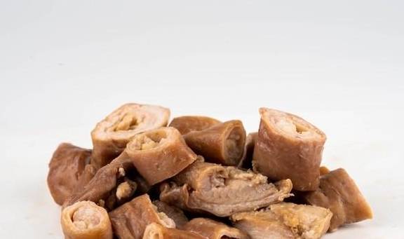 現在正式回答朋友的疑問,真正的九轉大腸不用炸,而是用白煮大腸制作。