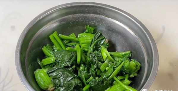 首先準備一小把菠菜,放入清水中,加入一小勺鹽,浸泡十幾分鐘,泡好以後再用清水多清洗幾遍,洗幹凈以後,放入盆中控水備用。