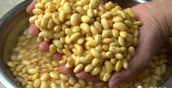 黃豆平時一般拿來打豆漿,今天老媽用它分享個開胃小菜的做法,做這麼一段可以解決七天的開胃菜,口感綿軟又入味,好吃下飯還有營養。這些是一斤黃豆,提前浸泡瞭一碗,已經變得胖嘟嘟的,體積明顯增大。