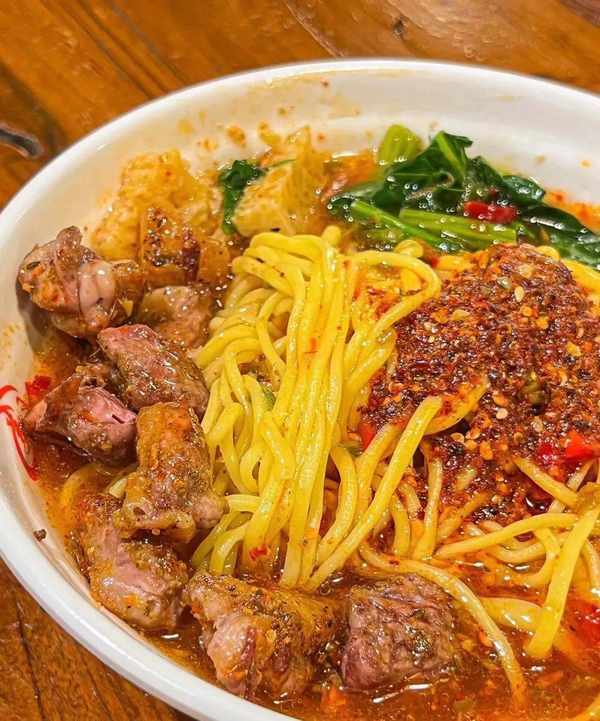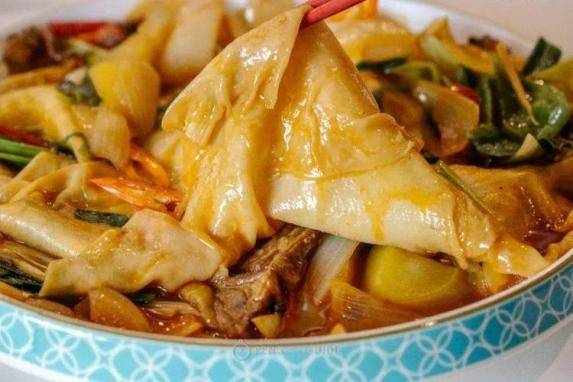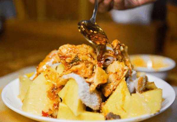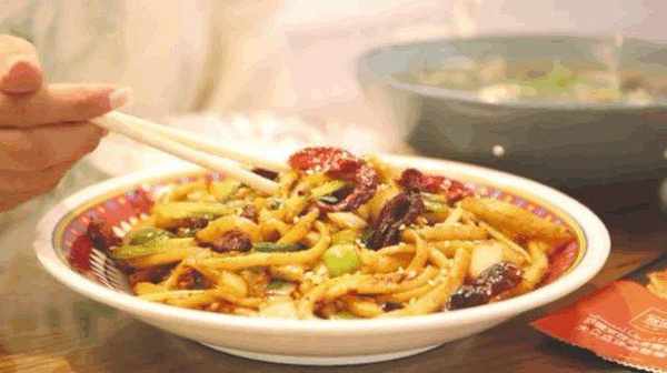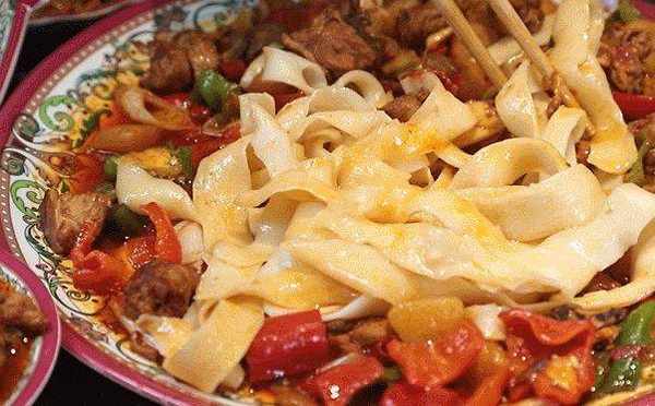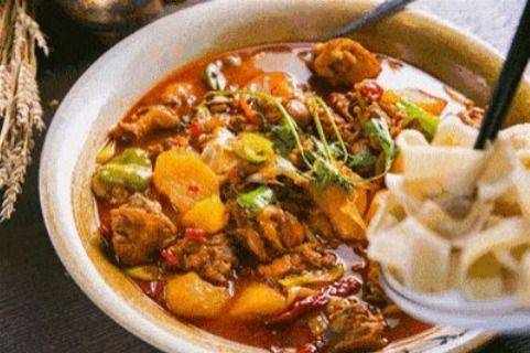 皮帶面裹著大盤雞的醬汁,麻辣嫩滑,來一碗皮帶面配上大盤雞沙綿的土豆、鮮嫩的雞肉,吃起來讓人酣暢淋漓。