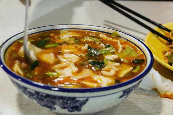 揪面片雖然是面食,做法卻猶如炒面,味道鮮香可口,湯汁濃鬱。來上一碗揪片子,溫胃潤腸。