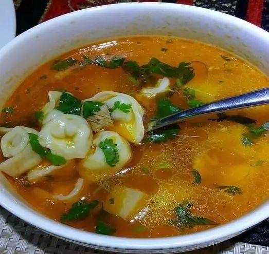 新疆味道曲曲兒,用羊肉做餡,湯也是羊肉湯,可放入西紅柿、木耳、菠菜、香菜等食材;根據個人的口味,也可以搭配其它的菜。