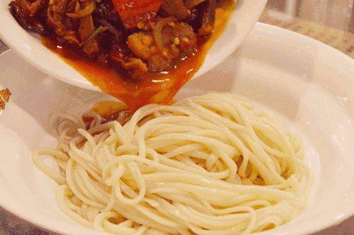 新疆的面條不是搟出來的,而是用手拉出來的,勁道又有韌勁。