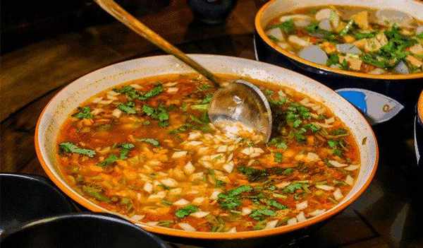 新疆的湯飯不是米飯,而是片狀面食。揪片子也稱揪面片,吃著筋道爽滑。
