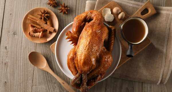 德州扒雞屬於老湯慢燉,肉質一秒脫骨,雞肉中的每一絲肉質都透著香味。德州扒雞為什麼香味這麼獨特,原因是盡管是流傳百年,在甄選和使用香料的過程中也從不曾大意。每一隻雞都是由八角、花椒、丁香、桂皮、草果、陳皮、白芷、砂仁、玉果、三萘、桂條、肉桂、生薑、小茴香等二十多種中藥材烹制而成的,而德州扒雞並不隻有味道美,還有一定的營養價值,可以開胃、補腎、有助於消化等作用。