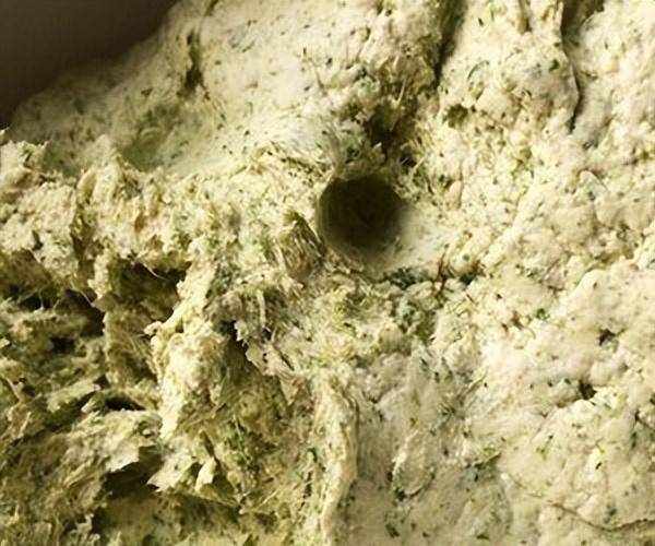 6、餡料搞定之後可以開始準備面團,鼠曲草洗幹凈。焯水,擰幹,備用。