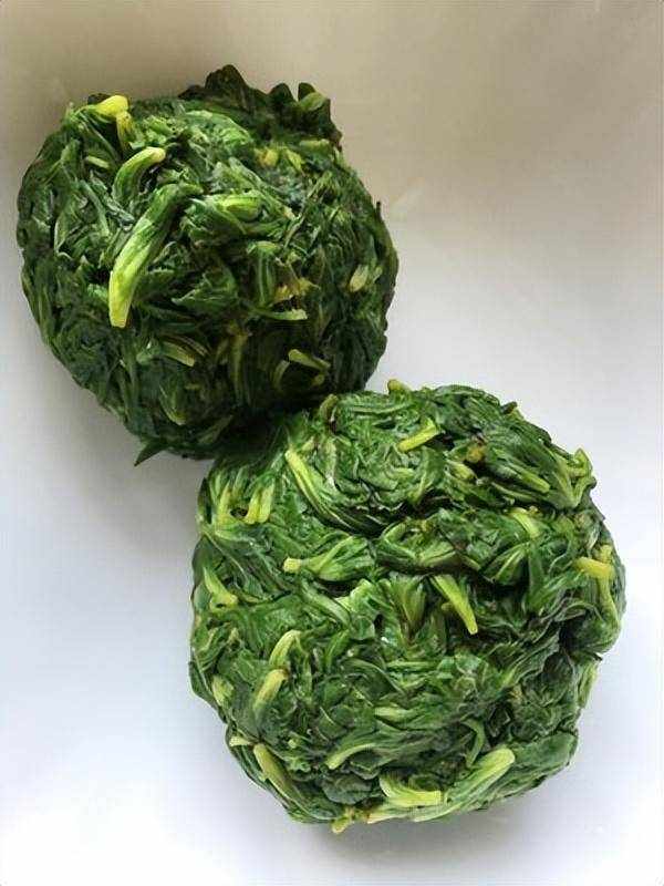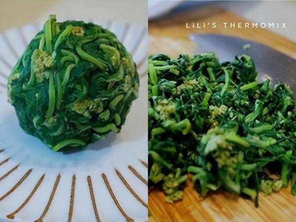 3、將煮過的清明菜瀝出過冷水擠幹,切碎備用。
