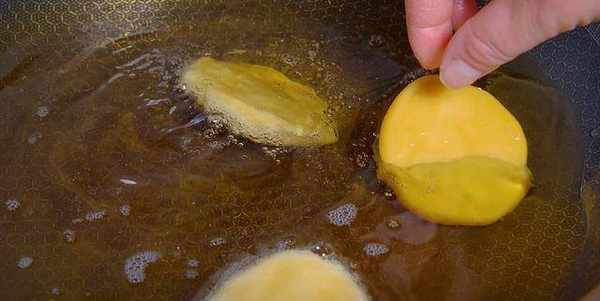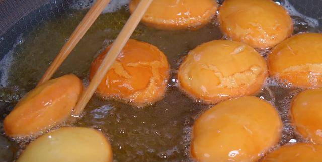 11.反復翻面多次,一直炸到體積變大,顏色變得金黃就可以出鍋瞭。