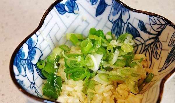 蔥去皮洗凈切碎,大蒜去皮洗凈切成蒜末。