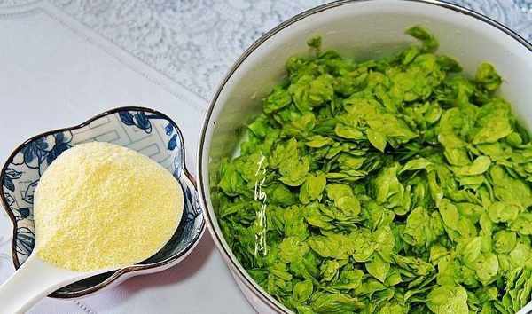 2、榆樹錢飯,可以選用玉米面粉,也可以選用小麥面粉,根據個人的喜好搭配,口感上玉米面更好一些。