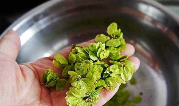 采摘回來的榆樹錢是這樣的,一朵一朵一串一串的,一定要細心去掉雜質,去掉小尾巴,隻用花瓣即可,這一步很關鍵,否則很難清洗幹凈。