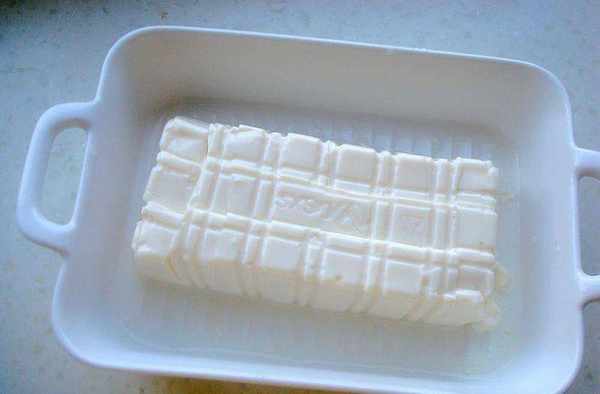 做法:1、豆腐撕去表面塑料膜,扣在盤中。扣出的豆腐劃成小方塊,控去水份放入深一些的盤中(內酯豆腐含水量比較高,一定要提前空出水份,不然蒸的時候會出更多的湯汁,會把味道沖淡)。