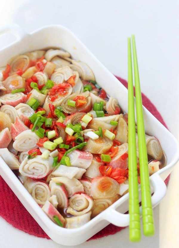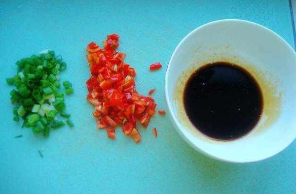 輔料:生抽2茶匙、白糖1/3茶匙、線椒1個幹辣椒2個、香蔥1棵、食鹽2克
