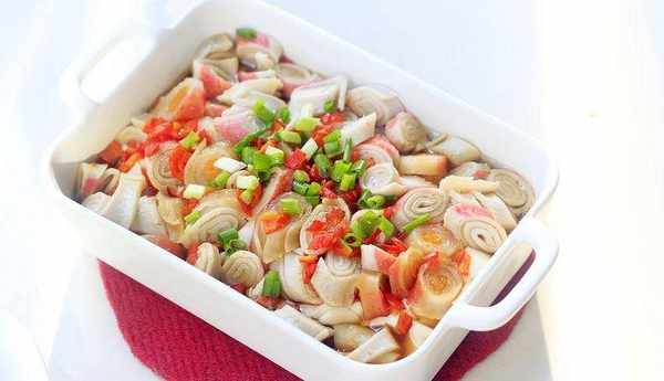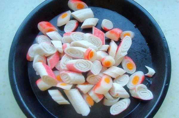 1、蟹棒最好用包裝好的,這種味道鮮美好吃。