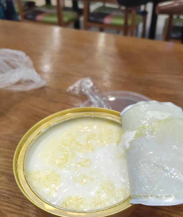 像如圖這種黃色的奶皮子,是自然發酵後產生的,一定要有這個,才是這個酸奶的靈魂所在!這樣的酸奶給我再多,都吃不膩!