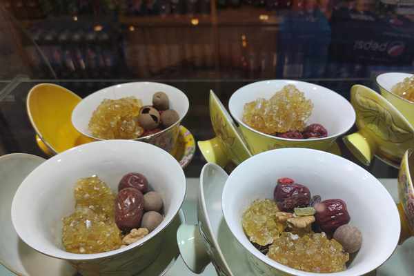 在青海還有一種喝茶俗稱刮碗子,根據個人的喜好,往碗裡放入涼茶或者熱茶,再加入冰糖、葡萄幹、枸杞、桂圓、白菊花、玫瑰花、紅棗八種以上的材料,故而又稱做“八寶茶”,有的也叫三炮臺,夏天的茶園裡,農傢樂裡,很多餐飲店也有蓋碗茶,青海雖不產茶,但是蓋碗茶還延伸一個茶飲的商品,市場裡很多都賣成品包裝的蓋碗茶,有的帶茶具,有的獨立包裝回傢自己沖飲。