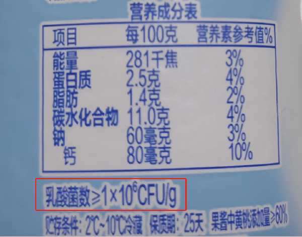 也就是說,我們在購買酸奶的時候一定要看好酸奶包裝上的數字:出廠時活菌數≥106CFU/g(mL)。